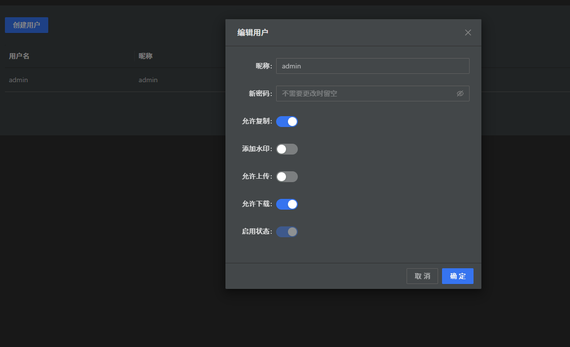 管理员登录MCP Factory后,进入后台管理,选择用户管理,编辑用户,打开“下载”开关。