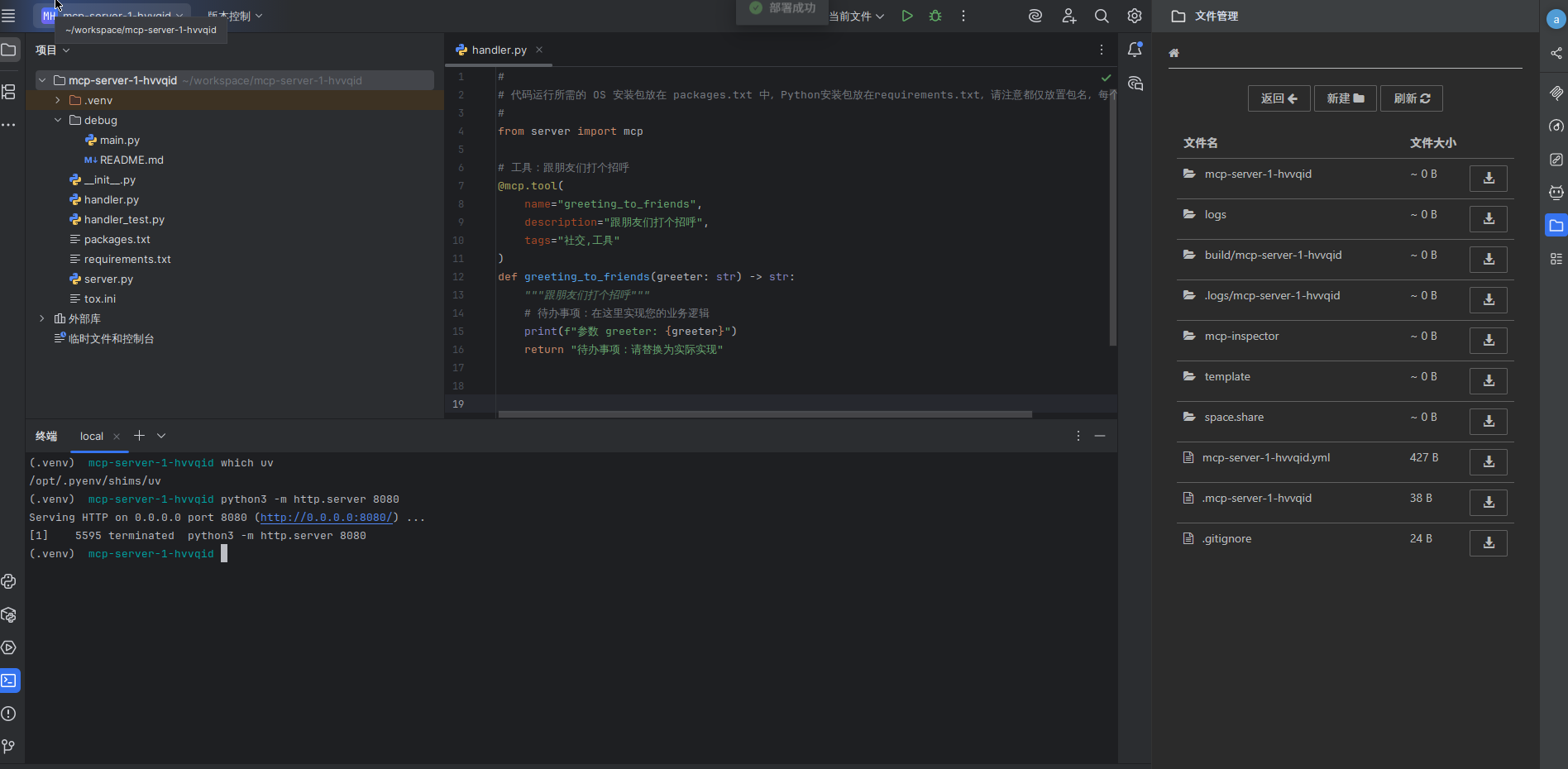 下载开关打开,允许从MCP Server侧边栏下载代码文件