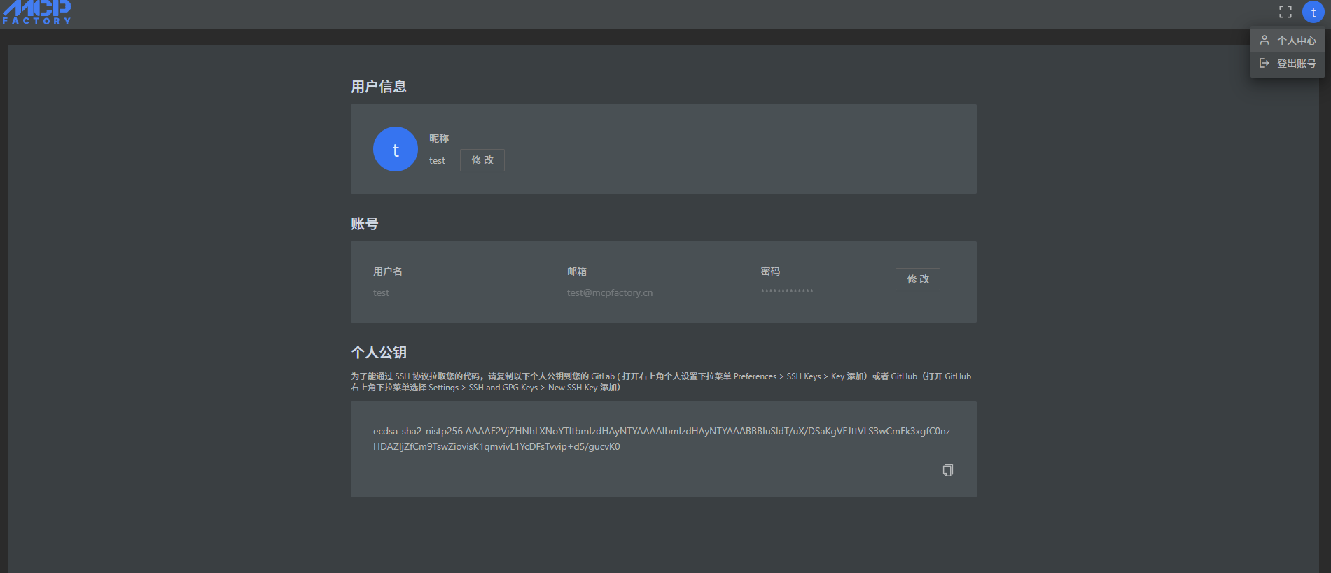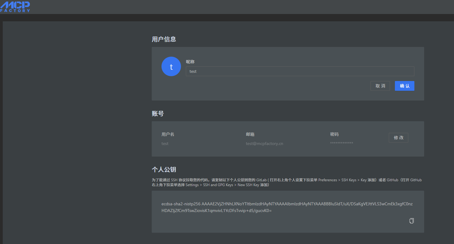 管理员登录MCP Factory后,进入后台管理,选择“用户管理”,编辑用户,修改用户的密码